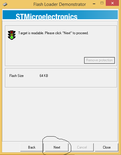 • Kích thước bộ nhớ flash của MCU sẽ xuất hiện. Nhấn next để tiếp tục.